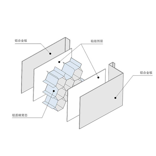 鋁蜂窩板使用金屬板材作為面板,進行開料剪切在分類進行彎折,也就是加工成型,再加上前處理,然后就是焊接打磨鋁蜂窩板面板和邊角的輪廓,在使用粘合膠粘合,進行鋁蜂窩板組裝合并,在進行前處理以后掛料,掛料下一工序就是噴涂,噴涂有多種涂漆材料,這是可以自由性的選氟碳或者聚酯。